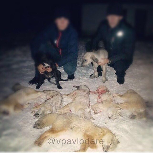 Фотография, на которой двое молодых людей запечатлели себя с гончими собаками на фоне разложенных на снегу трупов лисы и пяти лисят, появилась в сообществе Instagram vpavlodare. При этом лица позирующих охотников предусмотрительно замазаны.