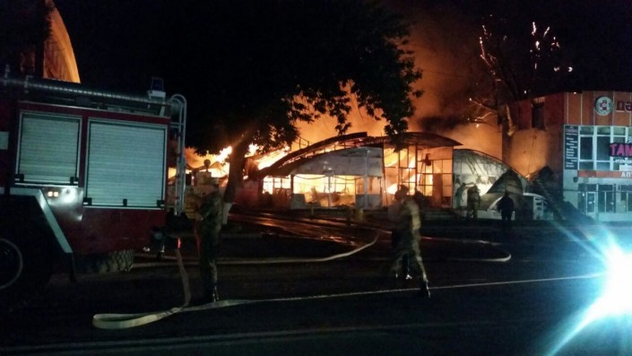 По словам очевидца, огонь охватил и близстоящие с рынком объекты - салон красоты, аптеку и магазин. Он отметил, что возгорание началось примерно после 00.00 ночи. Также очевидец сообщил, что на место пожара уже прибыли спасатели и полиция.