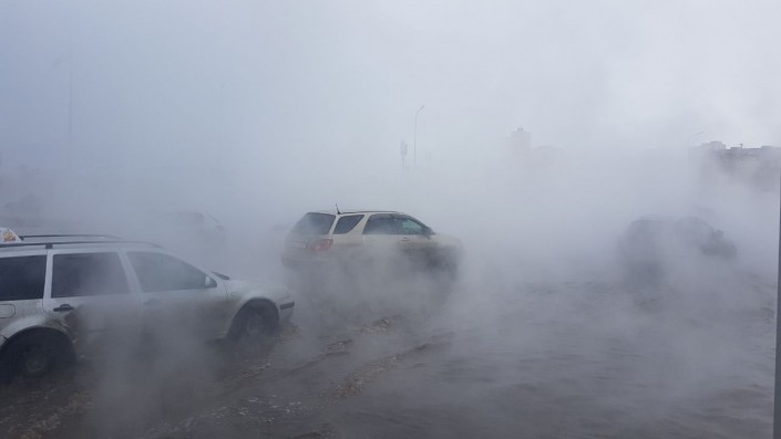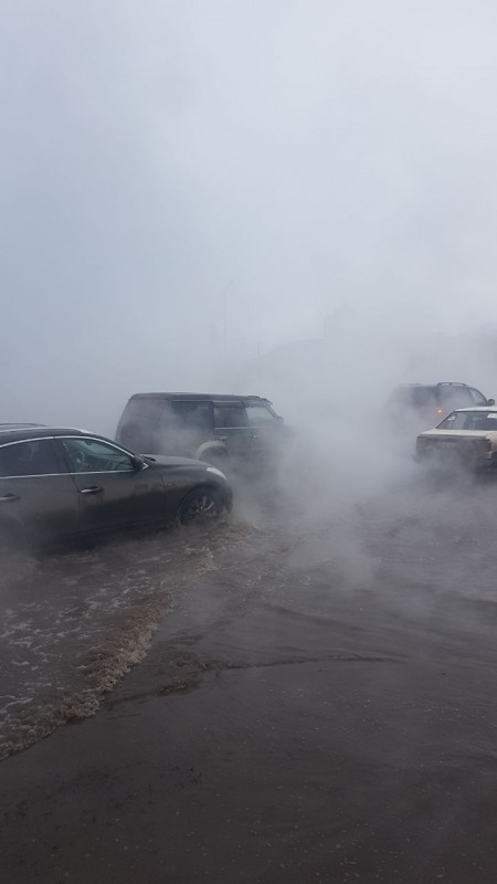 "Со стороны "Корзины" на Республику шли сильные потоки воды, там образовался транспортный коллапс. Машины еле "проплывают" там. Все усугубляет пар, приходится передвигаться наощупь почти", - рассказывают автолюбители.