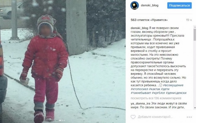 В Караганде привязанного к столбу ребенка-попрошайку отыскали полицейские фото instagram/denski_blog