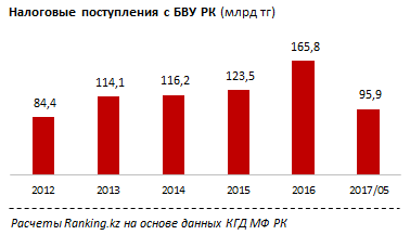 Казахстанские банки второго уровня за пять месяцев 2017 года пополнили казну на 96 миллиардов тенге, более половины из которых заплатили два банка, сообщают аналитики Ranking.kz.