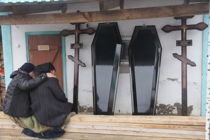 Мать погибшего Вячеслава Лопухина оплакивает своего сына и мать. © uralskweek.kz / Рауль Упоров