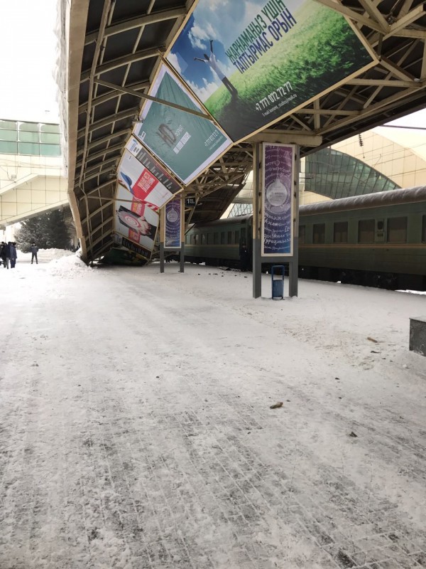 Позже стало известно, что 25 января в 14 часов 15 минут из-за сильных порывов ветра и обильного снегопада на перроне железнодорожного вокзала Астаны произошло обрушение части навеса общей площадью 40 квадратных метров. Задет вагон поезда № 376 сообщением Астана - Лениногорск.