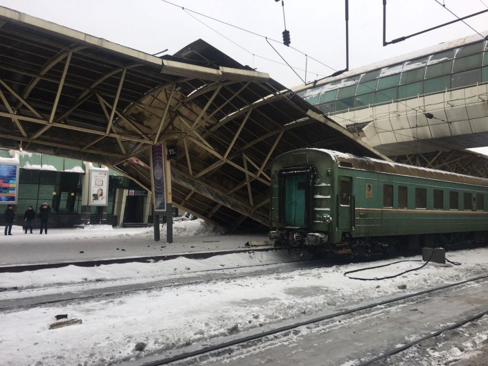 Конструкция рухнула на поезд на вокзале Астаны Фото Турар Казангапов© Снято на Nikon D500