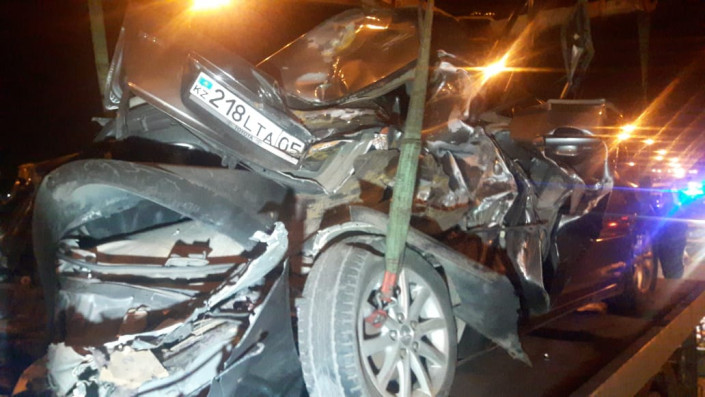 Крупное ДТП произошло вечером в четверг в Алматы на мосту-развязке Рыскулова - Жансугурова, передает корреспондент программы "Территория происшествий" на телеканале СТВ.