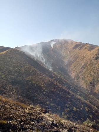 Крупный пожар тушат пожарные, сотрудники лесхоза и добровольные пожарные формирования в труднодоступной горной местности в Жамбылской области, передает корреспондент Tengrinews.kz со ссылкой на пресс-службу КЧС МВД РК.