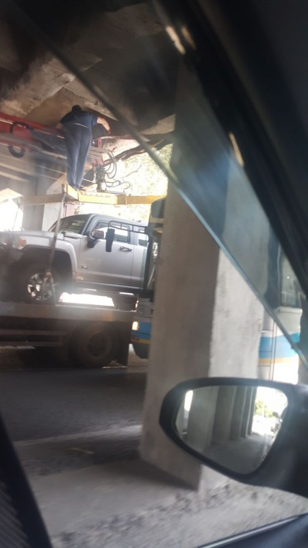 Курьез с застрявшим под мостом полицейским эвакуатором объяснили в ДВД Алматы фото очевидца
