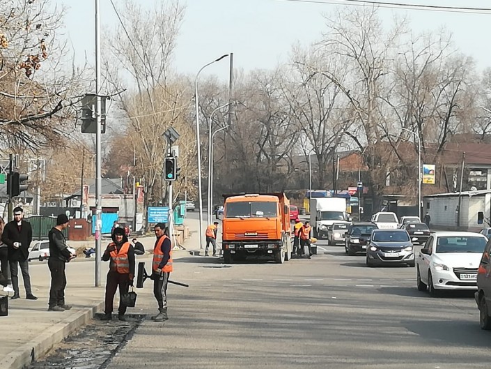 Lada Priora на полном ходу сбила дорожных рабочих в Алматы