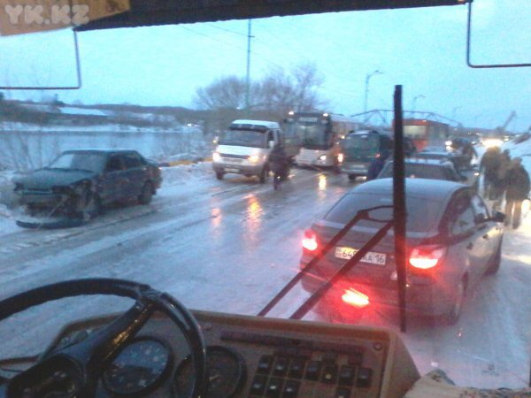 Между тем, в городе образовалась одна из самых протяженных автобусных пробок за последние несколько лет. Из-за скользкой трассы общественный транспорт застрял на льду. Огромная пробка в несколько сотен метров растянулась на проспекте в районе Левобережья. Около двух десятков автобусов встали один за другим, будучи не в состоянии двигаться на небольшой пригорок из-за чрезвычайно скользкой трассы. Сотни горожан опоздали на работу. В ситуацию уже вмешались местные власти.