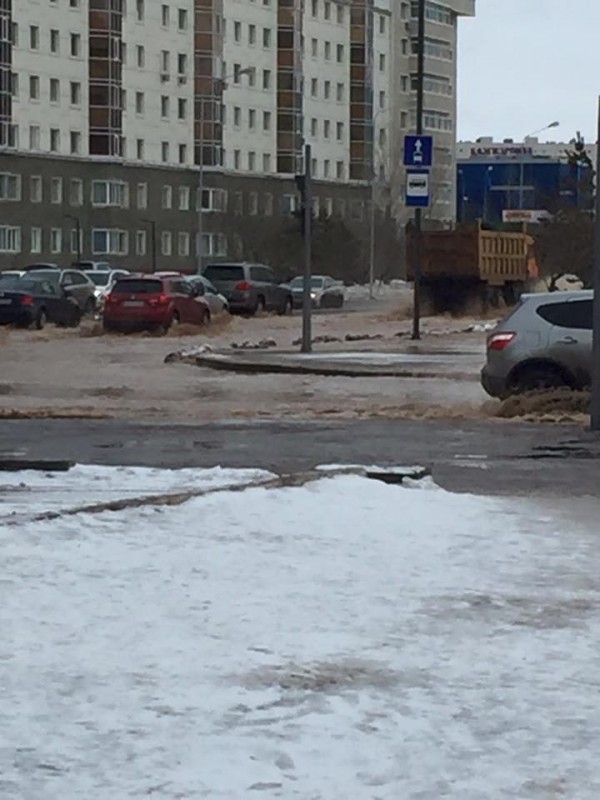 Левобережье Астаны затопило из-за порыва водопровода Фото очевидца