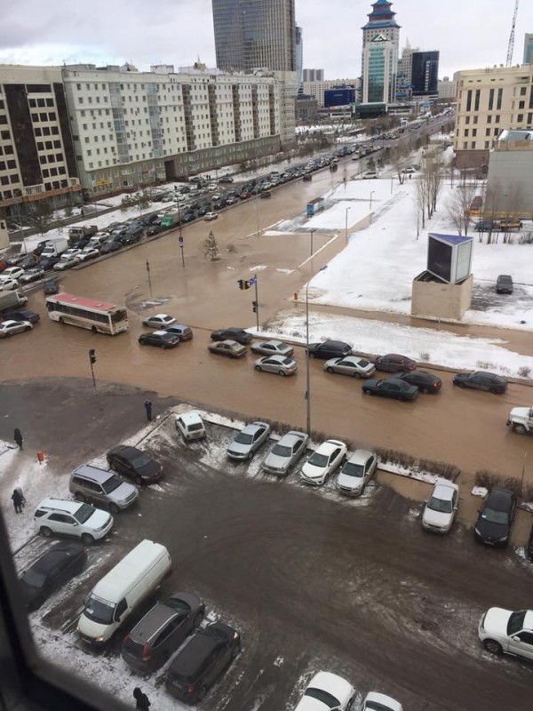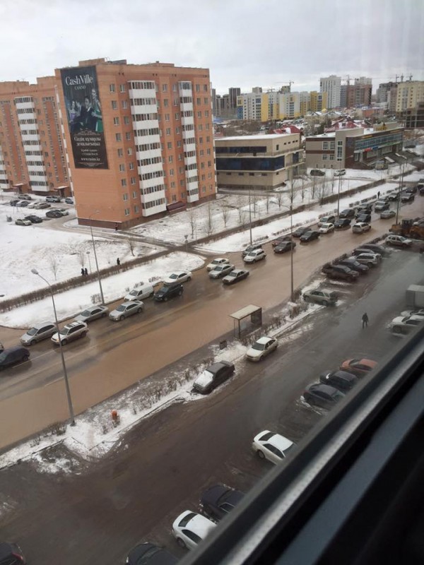 Авария произошла на левом берегу на пересечении улиц Сауран-Сыганак. Буквально за несколько минут вода затопила проезжую часть и затруднила движение на улице.