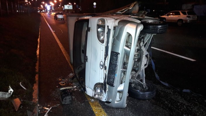 Авария произошла на ВОАД. Как рассказал водитель китайского грузовика, во время движения по дороге его машина сломалась. Он припарковался на обочине, выставил предупреждающие знаки и стал ждать эвакуатор. Ехавший по ВОАД в южном направлении водитель Lexus 470 не заметил грузовик и протаранил его сзади. От удара грузовик перевернулся набок.