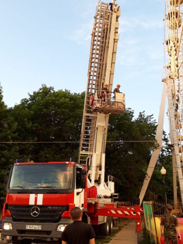 Как отметили в департаменте по чрезвычайным ситуациям, аттракцион остановился в 20.25. Сотрудники городского парка культуры и отдыха сразу же вызвали спасателей. Людей снимали с высоты при помощи пожарного подъемника.