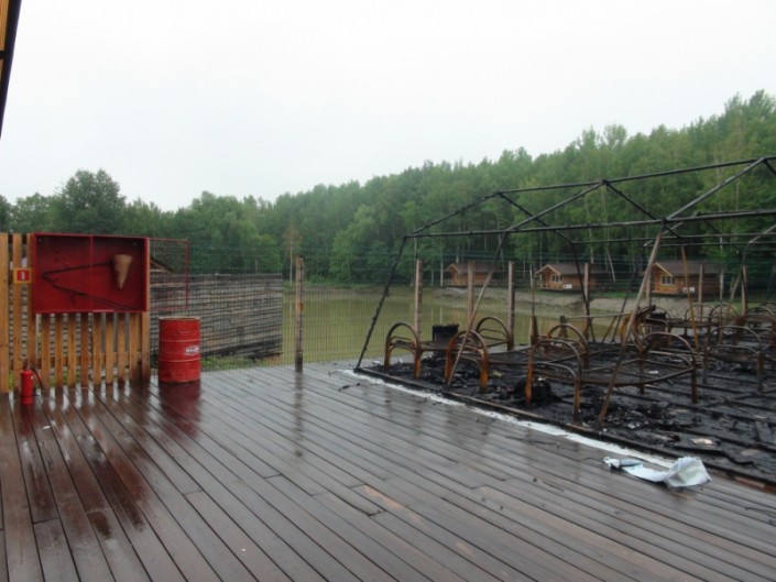 "Он спал и не слышал, чтобы их будили! Ему стало жарко, проснулся, повернулся направо — и вся стена в огне была, весь потолок в огне! Он встал и побежал будить всех и кричать: "Пожар! Вставайте!" Выбежали они в чем спали, босиком! Сгорели все вещи и телефон. Час стояли на улице, потом их куда-то впустили. Он позвонил мне в 04.00 где-то и сказал, что "у нас пожар, палатки сгорели, приезжай за мной!" Мы и выехали".