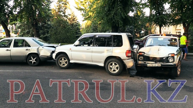 Как сообщается, ДТП произошло на одной из улиц Алматы. По словам очевидцев, водитель Porsche Cayenne отвлекся и врезался в три стоящих перед ним автомобиля, образовав так называемую "гармошку".