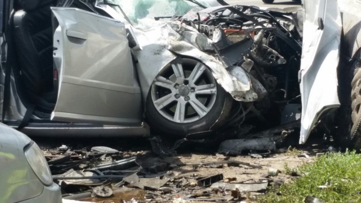 На кадрах видео и фотографиях с места ЧП, присланных в редакцию и размещенных в социальных сетях, видно, что в аварии пострадали несколько легковых и грузовой автомобили.