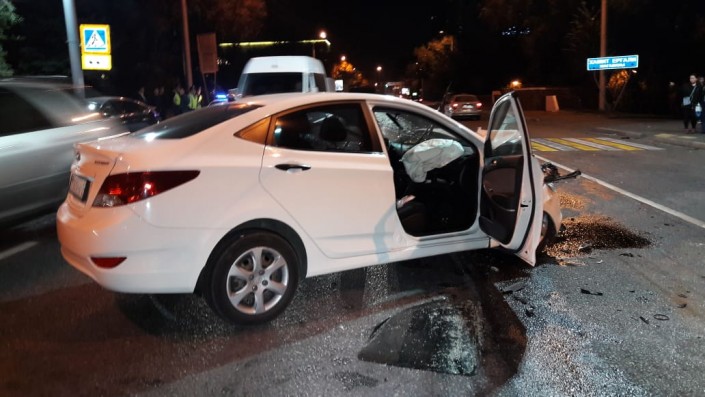 В аварии поучаствовали инкассаторская машина, BMW, Hyundai Accent и Nissan Teana. Инкассаторская "Газель" и BMW двигались по Сатпаева в восточном направлении. Водитель Nissan Teana собирался повернуть налево. Следовавший в противоположном направлении Hyundai Accent выехал на полосу встречного движения и допустил столкновение с тремя авто.