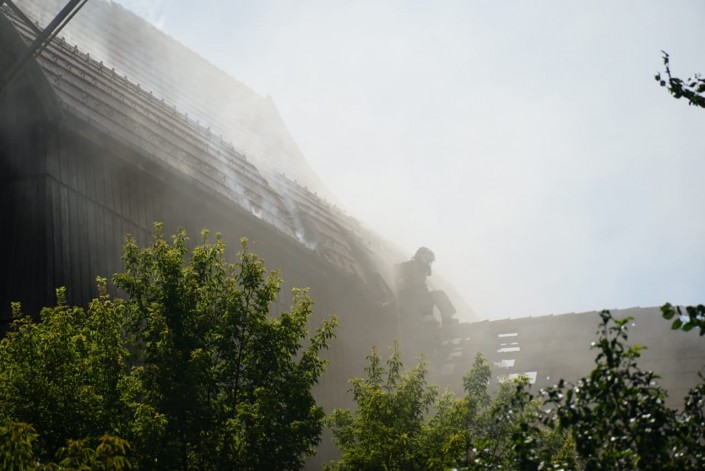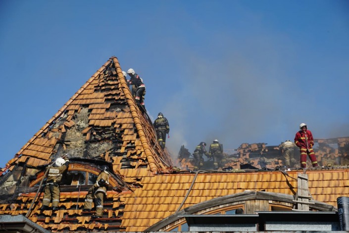 Предварительная причина... Велись ремонтные работы, может, они использовали газгольдер, газовый баллон, может, болгарку. Конструкция сложная, крыша из черепицы. До нашего прибытия никого не было в заведении. Площадь возгорания - 200 квадратов",  - добавил он.