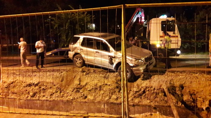 Mercedes-Benz ML следовал на запад. Со слов очевидцев и хозяина авто, его подрезала неизвестная автомашина. Чтобы избежать столкновения, водитель увел машину вправо. Обочина дороги была перекопана, разрыта теплотрасса в связи с ремонтными работами. Водитель вместе с автомобилем упал в яму.