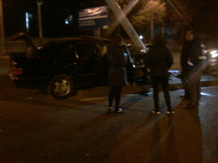 В результате аварии Mercedes врезался в мачту светофора на перекрестке и согнул его на несколько градусов. От удара двух автомобилей никто из водителей и пассажиров не пострадал.