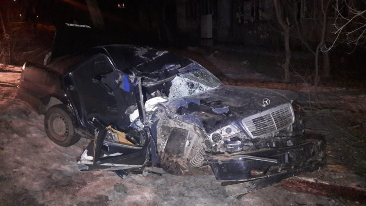 Водитель и пассажир с переднего сиденья скончались до приезда скорой после столкновения Mercedes c деревом, сообщает корреспондент программы "Территория происшествий" на телеканале СТВ.