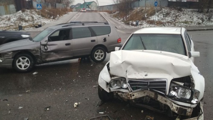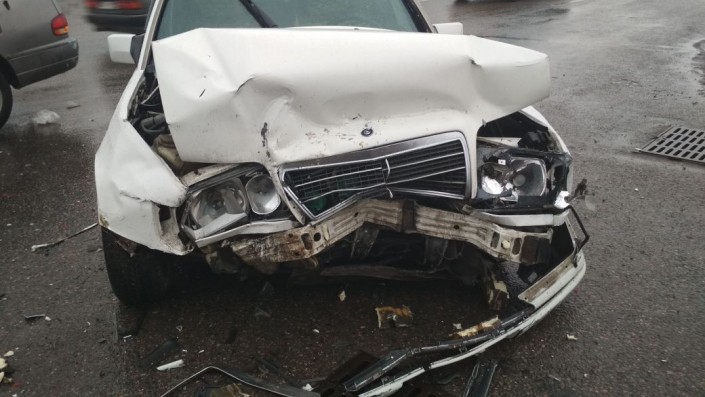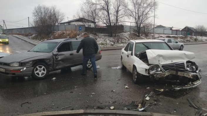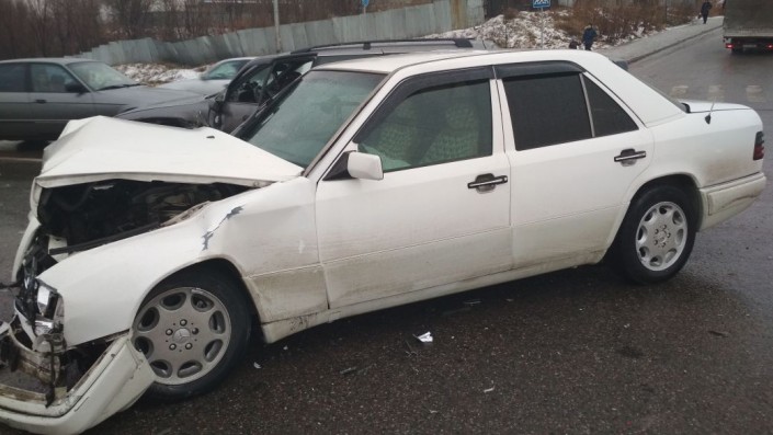 ДТП произошло вдоль БАКа по новой дороге, на повороте на рынок "Ожет". Автомашина Mercedes двигалась в восточном направлении, в этот момент в северном направлении двигалась Toyota Camry, водитель которой хотел сделать поворот на новую дорогу вдоль БАКа. В результате Mercedes ударил Toyota Camry, их откинуло на полосу встречного движения.