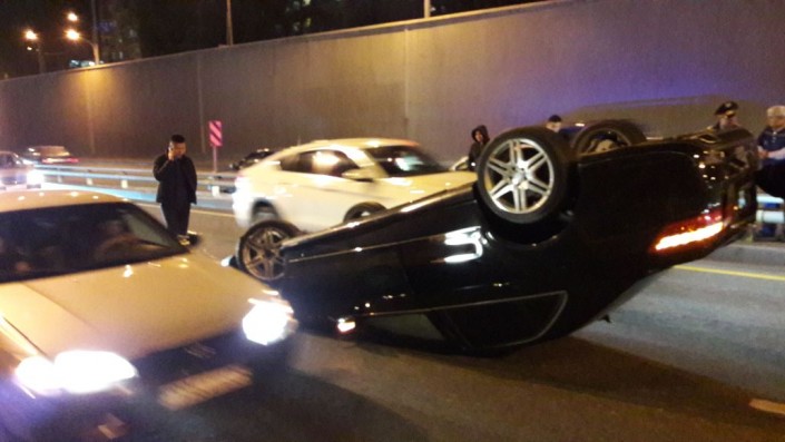 В туннеле столкнулись автомобили MG и Mercedes. По предварительной версии, Mercedes ударил MG в заднюю часть, после чего перевернулся на крышу. Водитель MG был госпитализирован с черепно-мозговой травмой. Другие подробности выясняются.