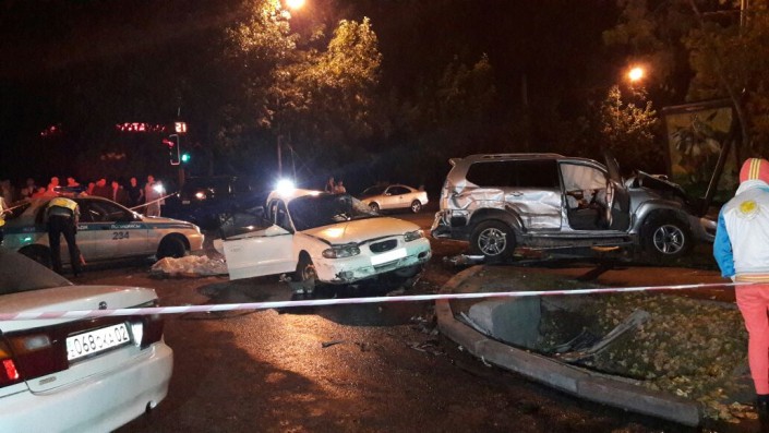 Инцидент произошел в ночь с 21 на 22 августа около 3.00 на пересечении улиц Толе би и Калдаякова. Автомашина Lexus 470 ехала со стороны ВОАД по Толеби в западном направлении. В это время по Калдаякова в северном направлении двигалась Mazda 323, а в южном направлении - Hyundai Sonata и Toyota Land Cruiser Prado.