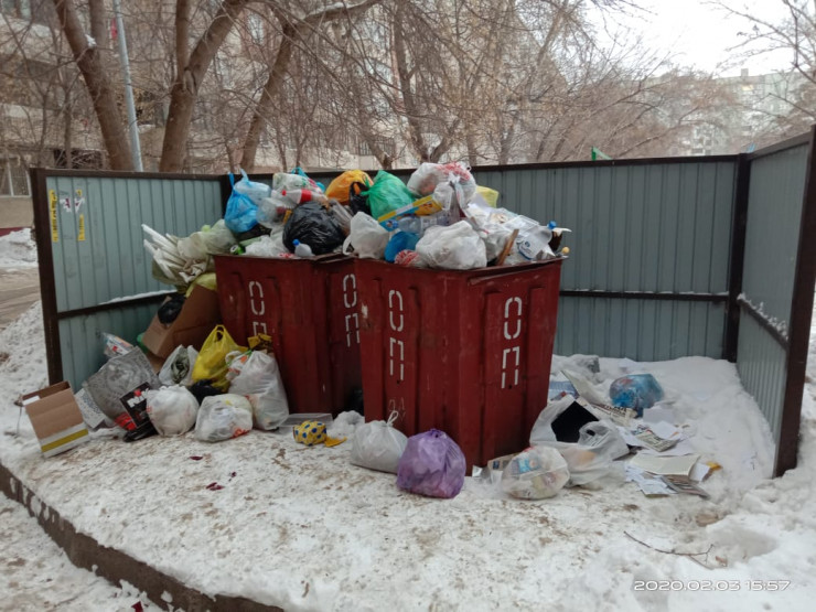 Контейнеры и баки во дворах жилых домов Павлодара доверху забиты бытовыми отходами, передает корреспондент Tengrinews.kz.