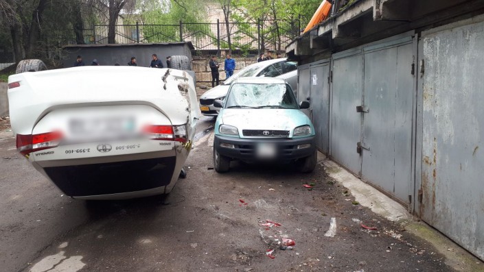 ДТП произошло во дворе по улице Сатпаева, между проспектами Достык и Назарбаева. Как рассказал водитель мусоровоза, он подъехал к мусорным контейнерам, однако не смог проехать из-за припаркованных автомобилей. Водитель поставил грузовик на ручник и вышел из салона, чтобы попросить владельцев убрать свои машины. Но их на месте не оказалось. В этот момент КамАЗ "сорвался" с ручника и врезался в Toyota Corolla. Она в свою очередь задела рядом припаркованный Rav-4 и перевернулась.
