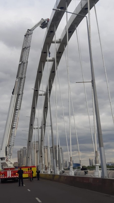 "В 15.35 наш сотрудник Центра оперативного управления заметил, что на мосту Сарайшык на металлическом дугообразном ограждении стоит мужчина. Незамедлительно туда была направлена экстренная служба спасения. Сейчас спасатели пытаются спустить мужчину", - сообщили в пресс-службе Департамента полиции Нур-Султана.
