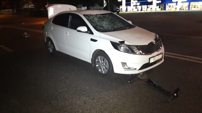 ДТП произошло на улице Жандосова. Со слов очевидцев, водитель KIA двигался по улице в западном направлении. В этот момент на пешеходный переход выехал мужчина на электросамокате. Водитель не успел среагировать и на полном ходу сбил самокатчика.