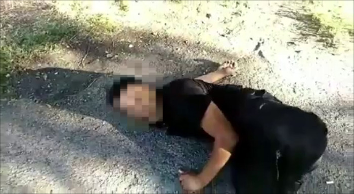 На кадрах видно лежащего на асфальте мужчину. Из височной области у него торчит отвертка. Он пытается встать, но не может. Вокруг стоят люди, один из них удерживает другого мужчину, находящегося рядом. В какой-то момент последний вырывается, подбегает к лежащему на земле и наклоняется к нему, возможно, чтобы вытащить из головы инструмент. Его вовремя останавливают очевидцы.