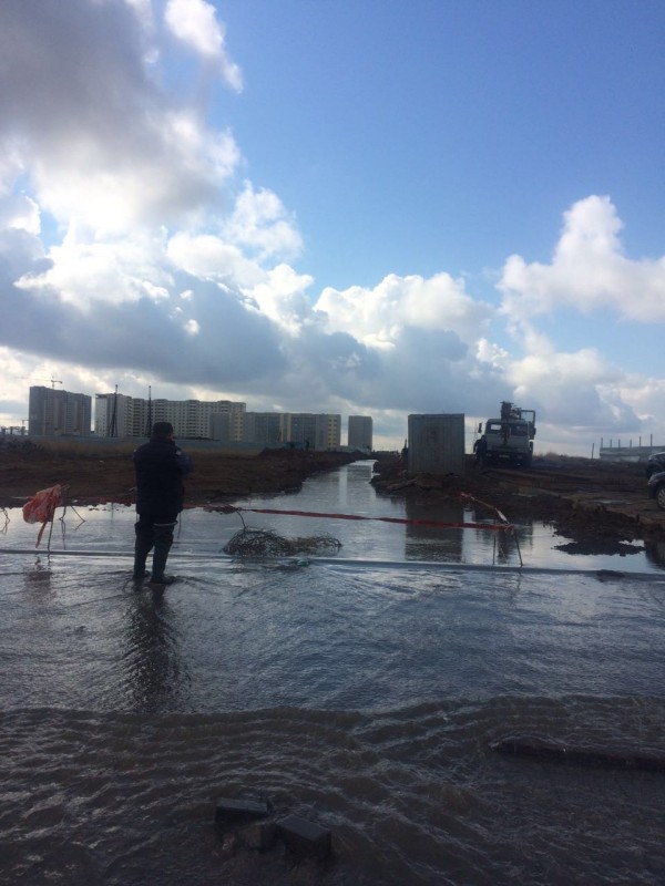 "По прибытии на место вызова стало известно, что в результате проведения земляных работ строительной компанией АstanaVipProject и нарушения обвалования озера Малый Талдыколь допущено попадание воды в кабельные лотки, и как следствие произошел перелив через дорожное полотно улицы Сыганак. Изначально протяженность перелива составляла около 300 метров, уровень воды достигал 20 сантиметров. Экстренные и коммунальные службы города сработали в оперативном порядке", - заявил Иманкулов.