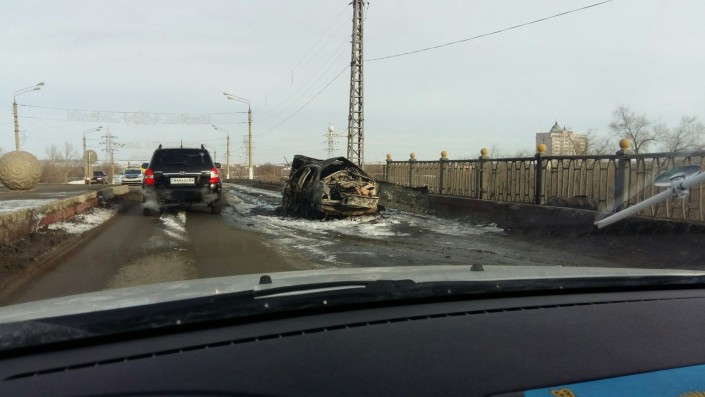 В Актобе на мосту в 5-м микрорайоне днем 23 января загорелся и взорвался легковой автомобиль Volkswagen Passat. Очевидцами инцидента стали десятки автолюбителей. Видео и фото происшествия они прислали на страницу zello_aktobe в Instagram.