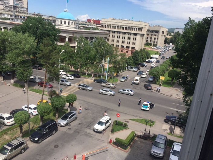 Как сообщают очевидцы, оцепление выставлено на пересечении проспекта Абылай хана и улицы Айтеке би. Полицейские замечены близ здания головного офиса "Жилстройсбербанка" по проспекту Абылай хана. Также очевидцы сообщили, что к зданию бизнес-центра "Алтын заман" по проспекту Сейфуллина, где также находится офис ЖССБ, тоже прибыли сотрудники полиции.