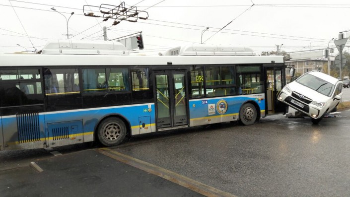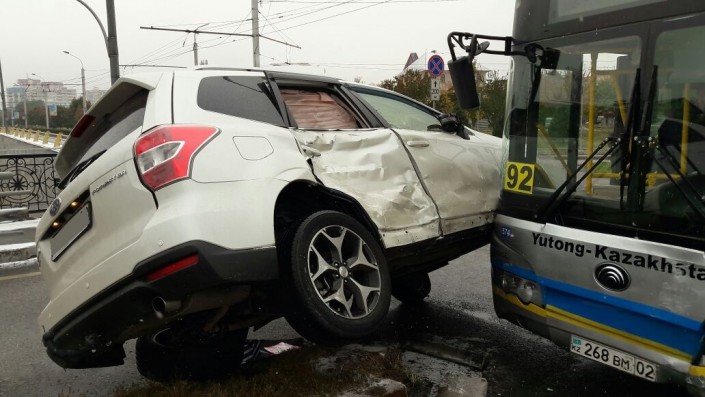Авария произошла утром около 11.00 на пересечении проспекта Абая и улицы Саина. Автомобиль Subaru, в котором находились девушка с полугодовалым ребенком, двигался по проспекту в западном направлении. Предположительно, при повороте налево на улицу Саина девушка не пропустила пассажирский транспорт, который двигался в противоположном направлении, и допустила столкновение, едва не опрокинув авто.