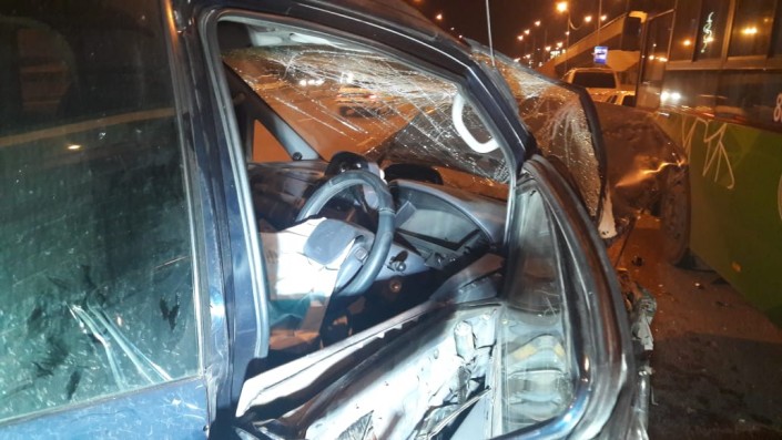 Неожиданный маневр. Минивэн врезался в  Subaru и автобус в Алматы Фото программы "Территория происшествий"