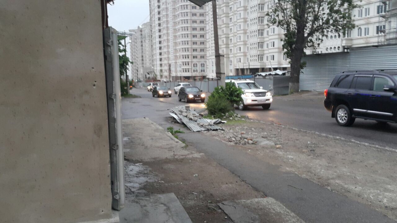 Последствия урагана на территории строящегося жилого комплекса, расположенного на улицах Навои и Торайгырова (бывшая Фрунзе).