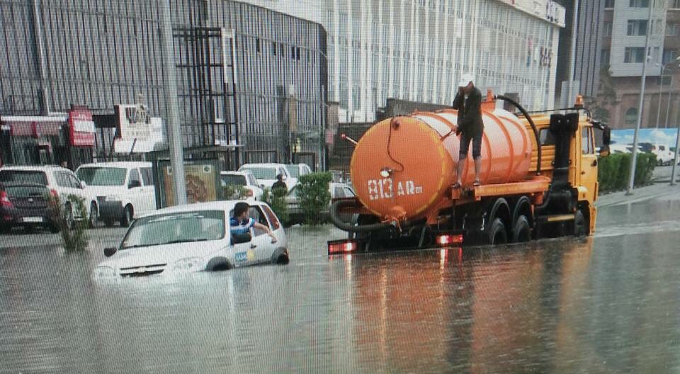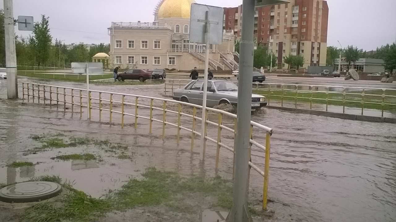 Между тем, в Астане в субботу тоже царила непогода. Из-за сильного ливня на дорогах столицы хаос. Фотографии и видео выкладывают пользователи соцсетей.