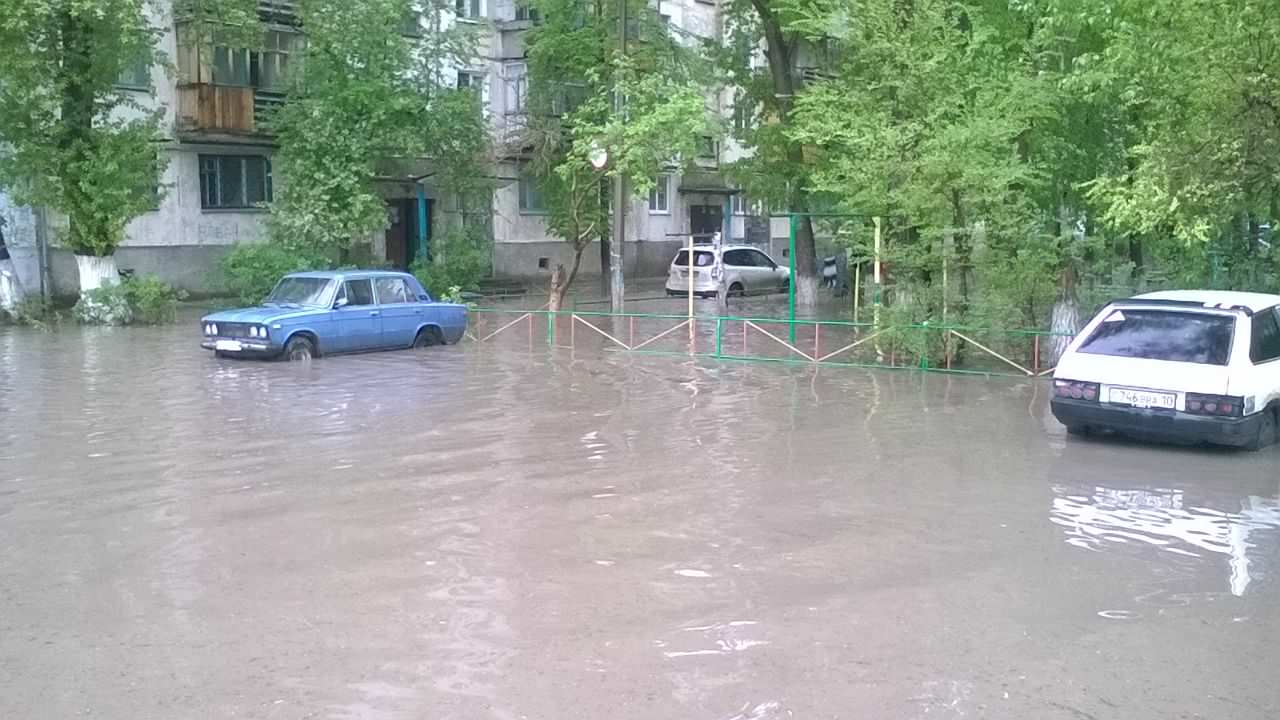 В социальных сетях костанайцы делятся снимками своих дворов, полностью залитых дождевой водой, и подъездных дорог с провалившимся асфальтом.