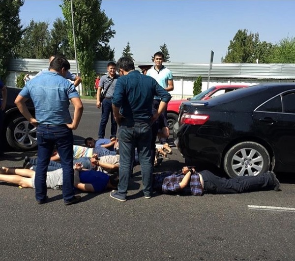 По словам очевидцев происшествия, полицейские задержали молодых людей прямо на проезжей части. На месте задержания находились три полицейские машины. В результате данного инцидента по проспекту Райымбека образовался автомобильный затор. Между тем движение транспорта не было перекрыто или ограничено полицейскими.