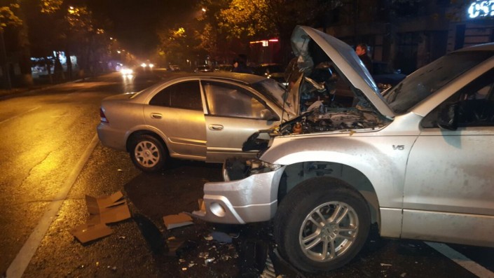 Первое ДТП произошло на пересечении улиц Толе би и Тургута Озала. По словам очевидцев, водитель Toyota Mark II проигнорировал красный сигнал светофора и столкнулся с двумя автомобилями марки BMW. В результате аварии пострадал водитель Toyota Mark II, его госпитализировали.