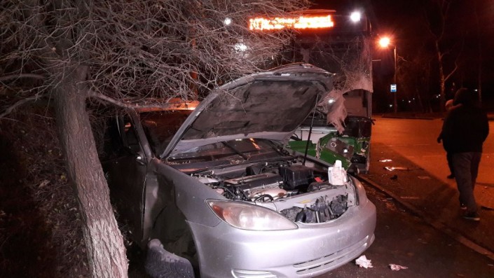 На пересечении улиц Жубанова и Алтынсарина столкнулись автобус 103-го маршрута и легковой автомобиль Toyota Camry. В результате аварии госпитализированы водитель автобуса и пассажир легковушки. Водитель японской иномарки скрылся с места происшествия.