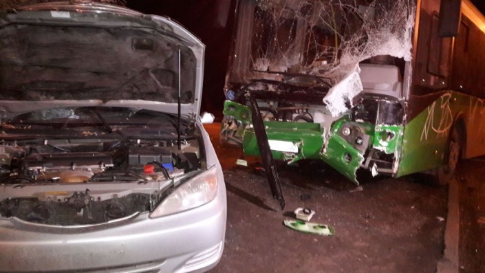 ДТП с участием пассажирского автобуса произошло в ночь с 16 на 17 ноября в Алматы, сообщает корреспондент программы "Территория происшествий" на телеканале СТВ.