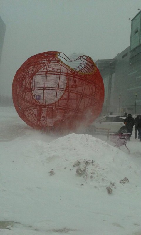 В социальных сетях распространяют фото, на котором заметно, что новогодний шар из-за сильного ветра придавил один из автомобилей. В ДЧС подтвердили, что на 112 поступал звонок об этом инциденте. Однако деталей не сообщили.