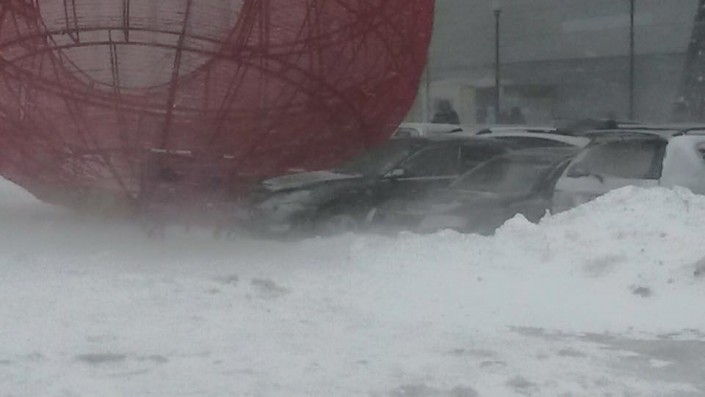 Новогодняя инсталляция возле торгово-развлекательного центра "Керуен" повредила автомобиль, передает корреспондент Tengrinews.kz.