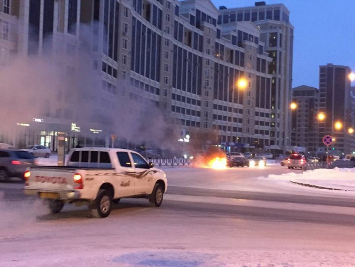 В Астане в районе ЖК "Олимп палас" загорелся автомобиль, сообщает корреспондент Tengrinews.kz со ссылкой на очевидца.