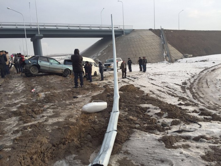 Как рассказывают очевидцы, на построенной недавно трассе Алматы - Капшагай обледенело бетонное покрытие. Сейчас водители едут по этой дороге с минимальной скоростью.
