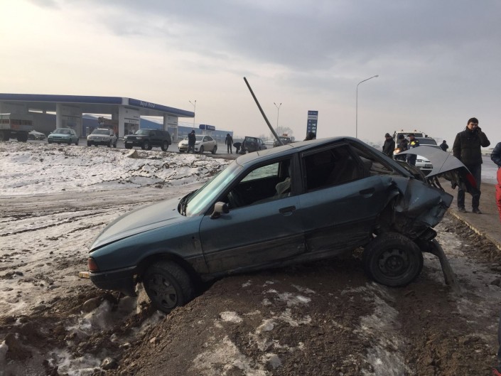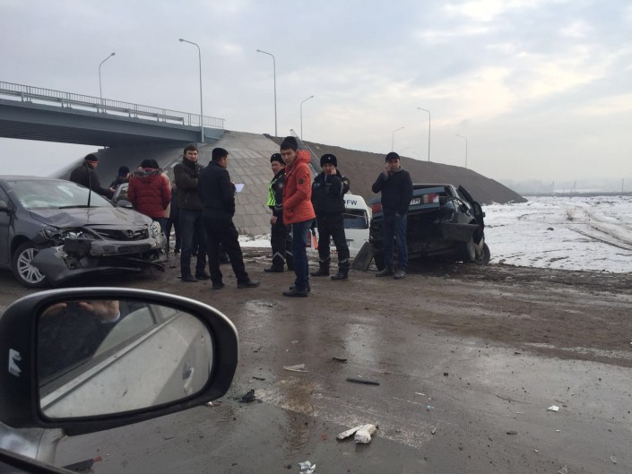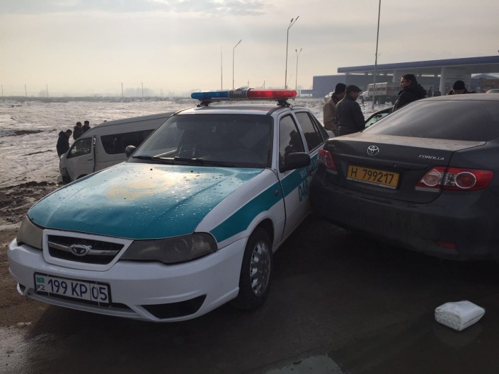По информации корреспондента Tengrinews.kz с места происшествия, в ДТП также попала полицейская автомашина. Она стояла на месте, когда с ней столкнулась Toyota Corolla.